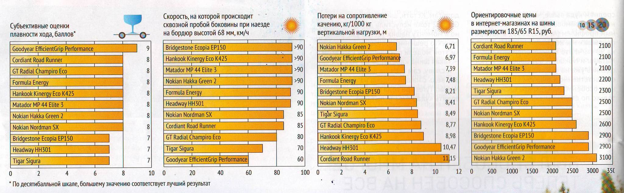Явными отстающими стали шины от китайцев, от которых, собственно, ничего другого и не ожидалось, а вот падение Bridgestone Ecopia EP150 весьма удивительно, и все же нельзя не отметить их сильную сторону – превосходная выносливость и прочность, позволяющая противостоять ударам. Европейские авторитетные источники, отметили Bridgestone Ecopia EP150 весьма неплохими характеристиками, но это в свою очередь только наталкивает на размышления о том, что им покрышки достаются из более качественного сырья, чем варианты для России.