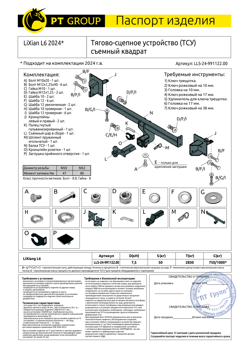 Правила безопасного использования: - Каждые 5000 км необходимо протягивать соединительные элементы изделия;
